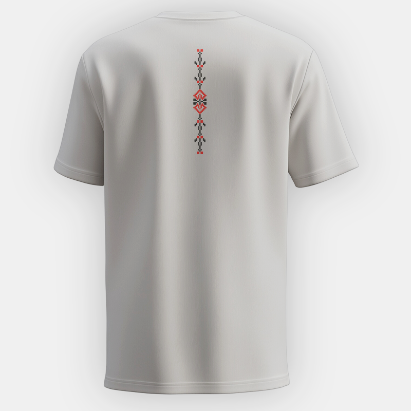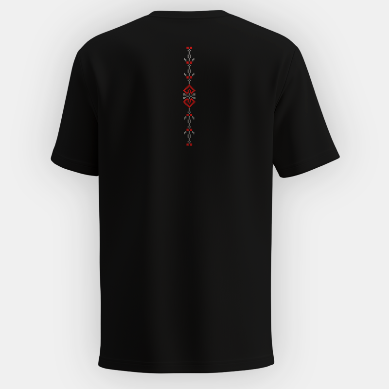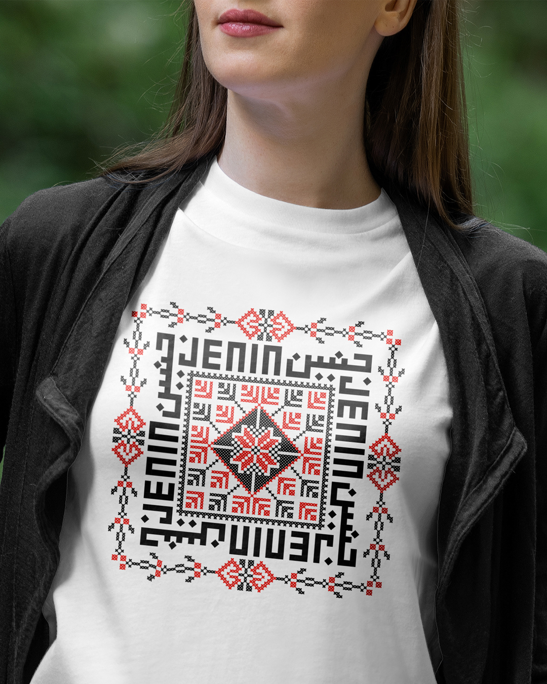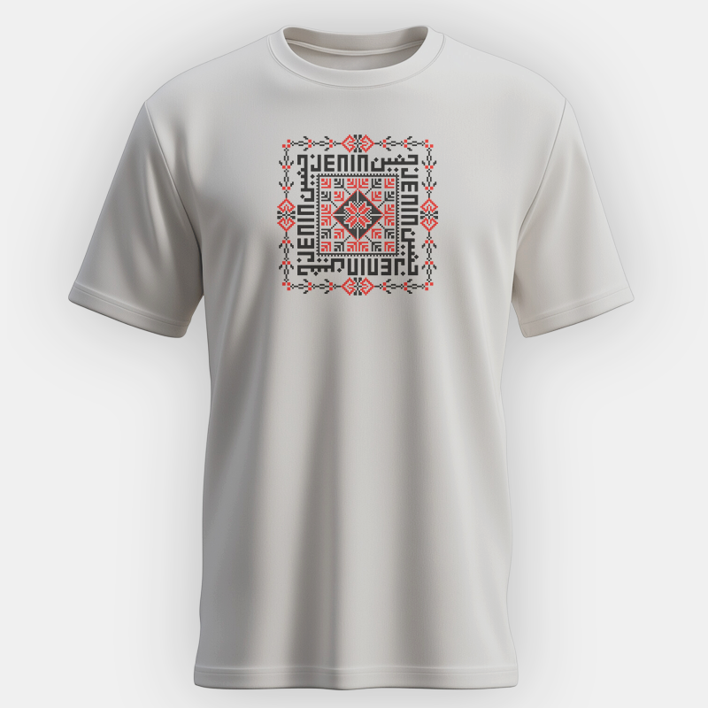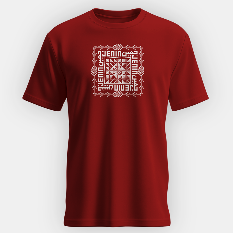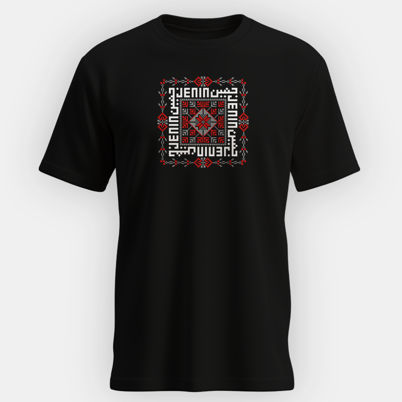 The Jenin T-Shirt blends tradition with modern style, featuring an intricate Palestinian embroidery-inspired design. The front showcases a bold geometric pattern in red, black, and white, embodying the cultural essence of Jenin, while the back has a minimalist embroidered motif running down the hood. Available in black, white, navy, maroon and grey, this t-shirt is a perfect statement piece for those who appreciate heritage and contemporary fashion.